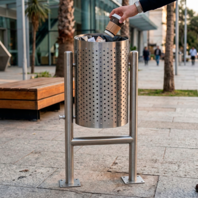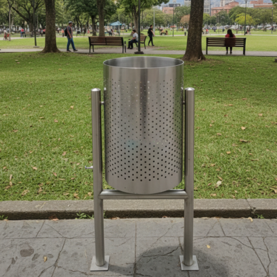 "La Caneca M-121 es la solución ideal para el manejo de residuos en proyectos urbanos e institucionales. Fabricada con materiales de alta resistencia, combina un diseño moderno perforado con una estructura robusta que garantiza durabilidad y elegancia en cualquier entorno exterior o interior."